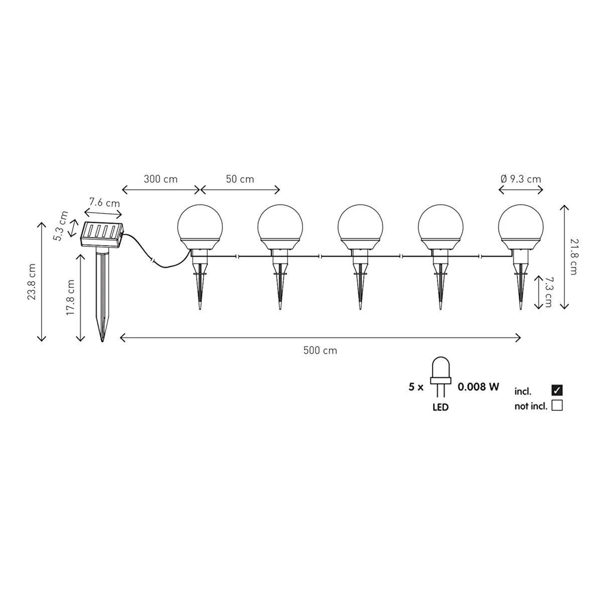 Genişlik 9,3 cm Yükseklik 17,5 cm Derinlik 9,3 cm Renk Siyah-Beyaz Malzeme Plastik Modeli Solar Aydınlatma Maksimum Güç 0,06 Watt Pil Kullanımı 1x1.2V 400mAH Ni-Mh AA