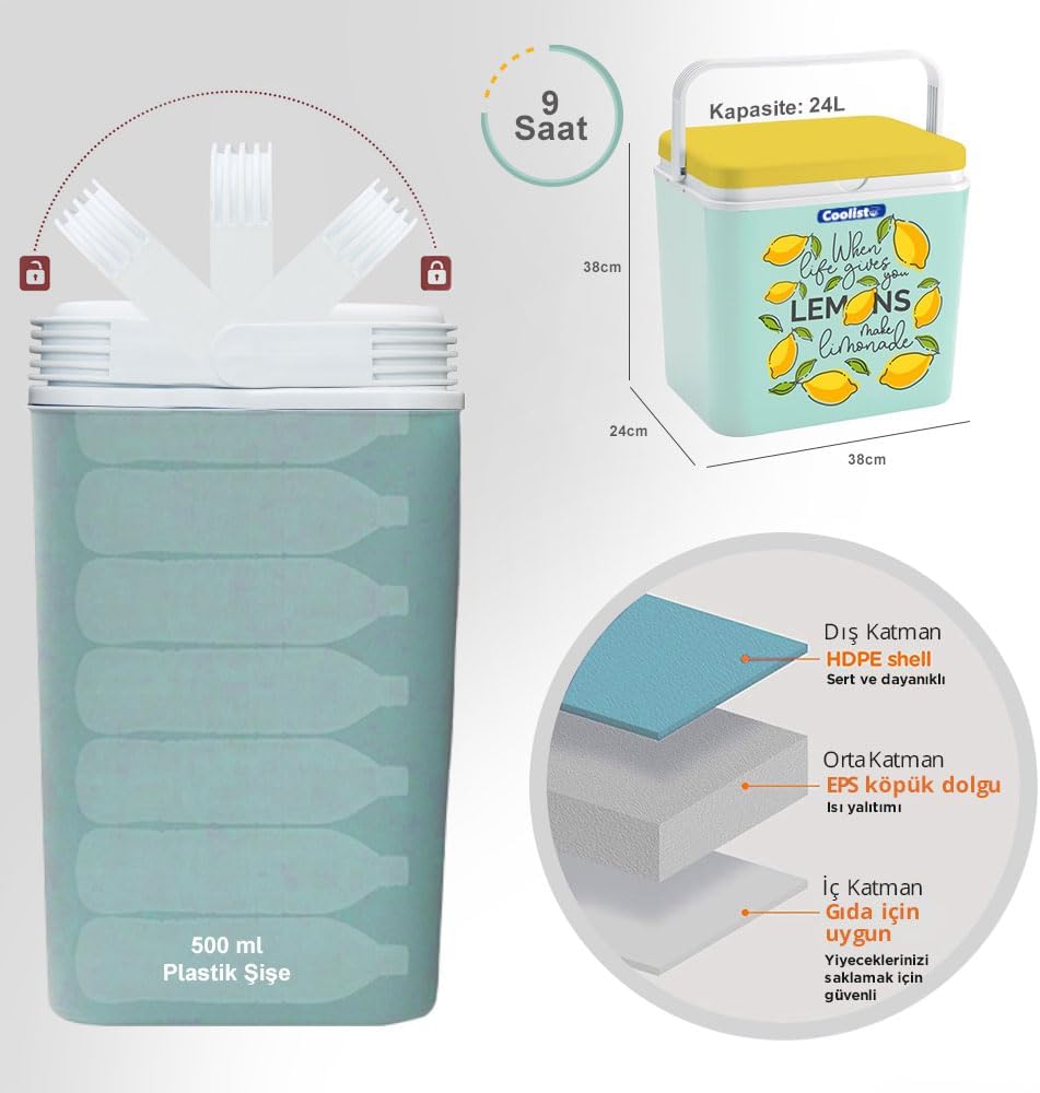 • Coolist CLB24LM 24 Litre Limon Desenli Buzluk + 2 Adet 400gr. Buz Kaseti