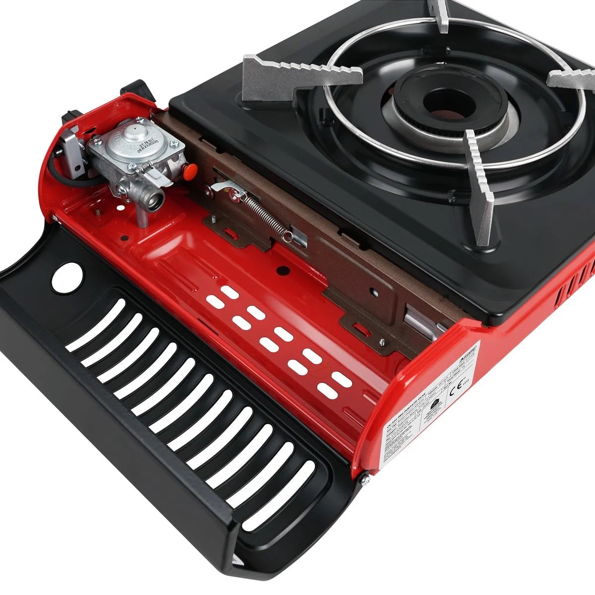 Çakmaklı, gaz stop emniyet mekanizmalı. Kolay saklama ve alev koruyucu rüzgarlık. Kamp ya da ev için mükemmel kullanım. Taşıma çantası mevcuttur. Gaz stop emniyet özelliği sadece 227 gram gaz kartuşları ile çalışır. Tüp bağlantısı gerçekleşmemektedir.